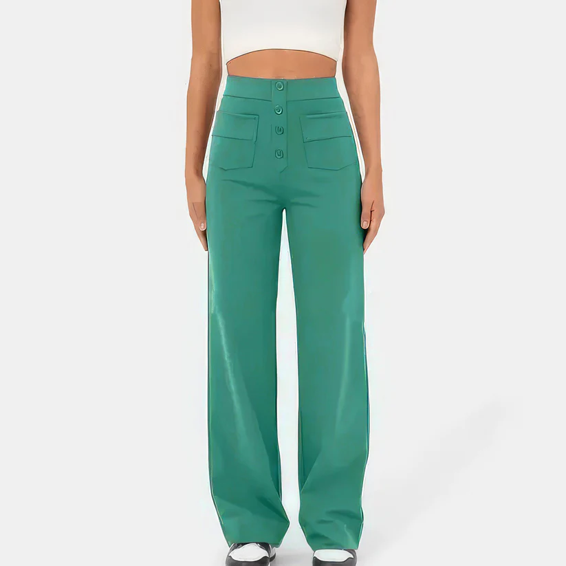 Enhance your style with these high-waisted pants, combining comfort, versatility, and chic design for any occasion.